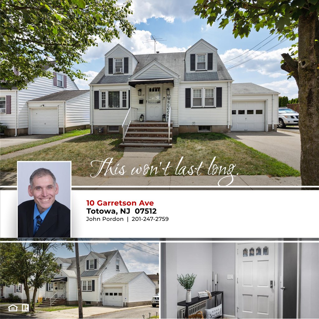 Move in ready Cape Cod on a quiet tree lined street. First level features nice entry foyer with Cedar Lined Guest closet, Hardwood floors, Large Updated Eat-in Kitchen with quartz counters and new cabinets, Living Room, Two Bedrooms, and Full bath with new toilet and vanity. Back door off kitchen leads to patio and backyard. Second level offers new steps, Two good sized bedrooms with vinyl laminate floors and half bath w/new vanity. Full, unfinished, walkout basement. Hot Water Heater(2022). 1 Car Attached Garage. Close to major highways, shopping, schools and restaurants. Plus enjoy the low Totowa taxes! Home to Be sold in "As Is" Condition. Home inspections limited to major structural, environmental or wood boring insects.