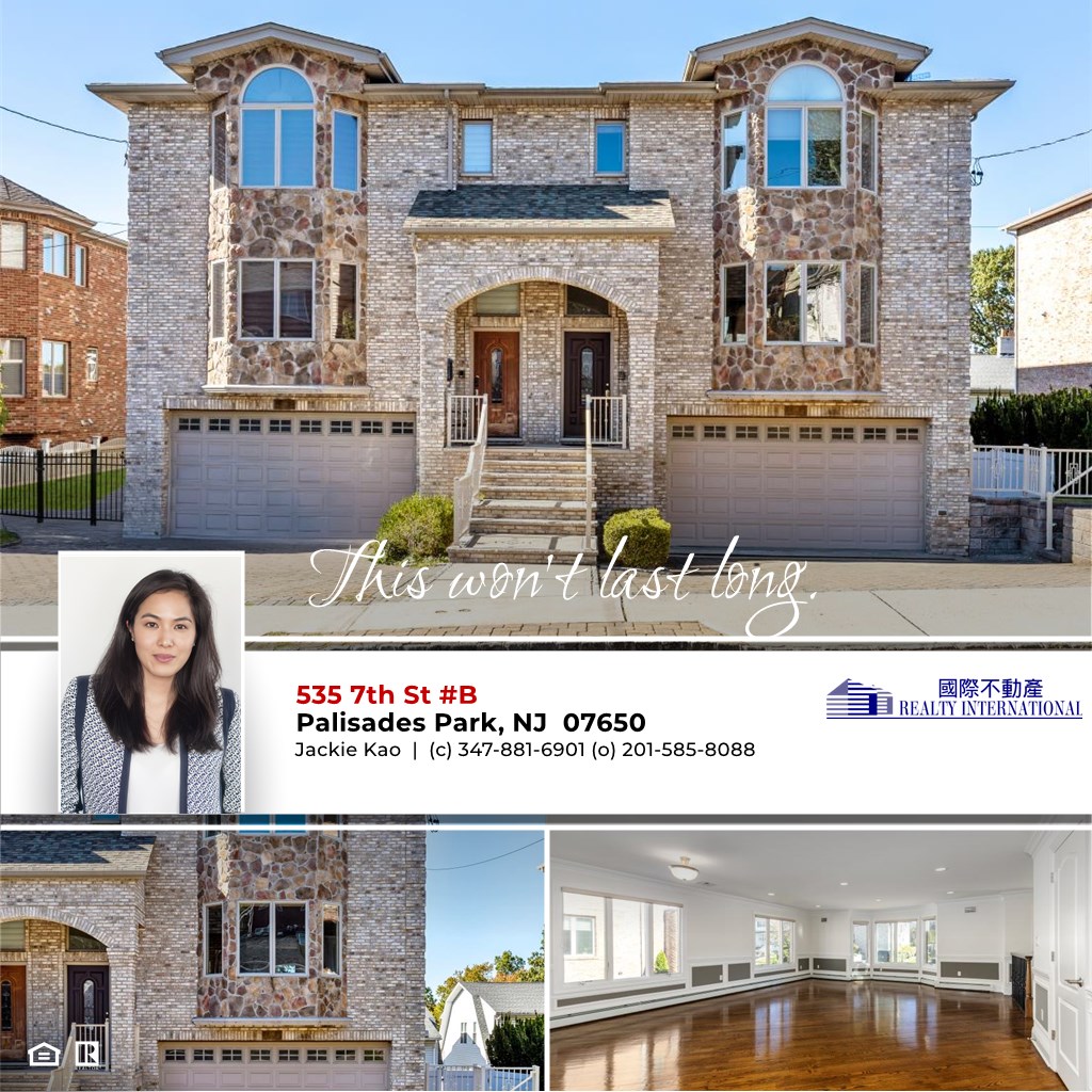 Welcome to 535 7th St. #B one of the largest and most spacious duplexes on the market, a true standout with the layout and square footage of a single-family home. Ideal for large families, multi-generational living, this home goes above and beyond. Enjoy an oversized layout with a formal living room, separate dining room, open kitchen with breakfast area leading to a deck, and a spacious family room with a remote-controlled gas fireplace, perfect for entertaining or relaxing. ALL BEDROOM'S FITS KING SIZE BEDS! Both secondary bedrooms offer LARGE walk-in closets. The luxurious primary suite features TWO massive walk-in closets, an ensuite with jacuzzi tub, standalone shower, and his-and-hers (and hers!) vanities, plus a private deck with sunset views. The fully finished basement includes a full bath, lots of natural light, 2 walk-in closets, and walk-out access to the backyard — ideal for guests, office, or rec space. Additional highlights: -Full-sized laundry room - True 2-car garage with 2 closets for extra storage - 2 private decks - Don't miss this rare opportunity — space, style, and function all in one! Seller is a licensed New Jersey real estate agent.